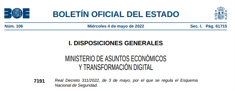 Real Decreto 311/2022, de 3 de mayo, por el que se regula el Esquema Nacional de Seguridad.